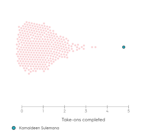 A player like Osimhen will not have a lot of flashy moments in his attacking duels. His real “duel” is off-ball (and uncharted); when he has the ball, he’s often trying to get a shot off before a duel even happens. Direct take-ons just aren’t really his game, and that’s fine.