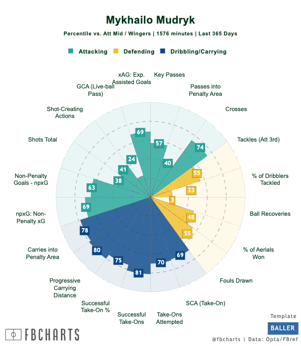 Mykhailo Mudryk (Chelsea) probably hasn’t been the disaster he’s been made out to be, and I tend to think his situation has played a large part in that. He’s a speed demon lacking in tactical nous and technical consistency. Could Arteta take this and turn some of those 75s and 80s up to 95s? I wouldn’t rule it out.