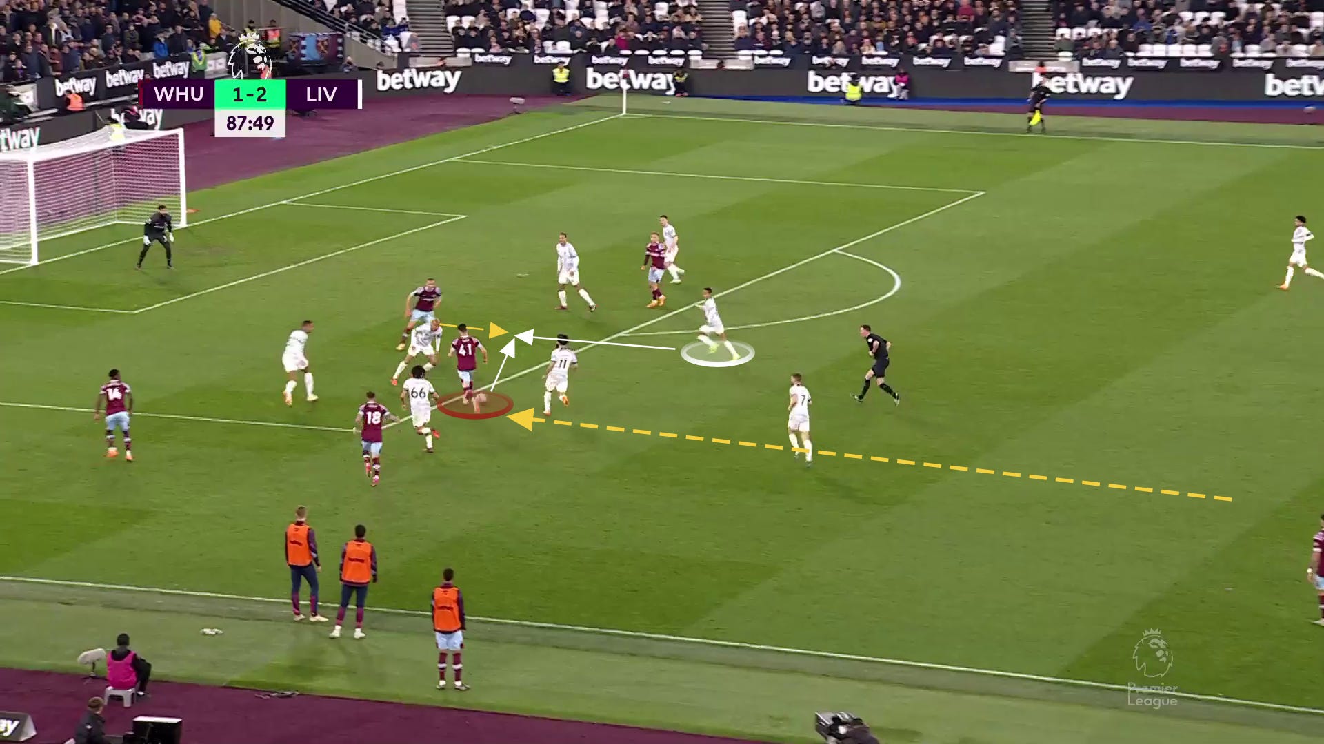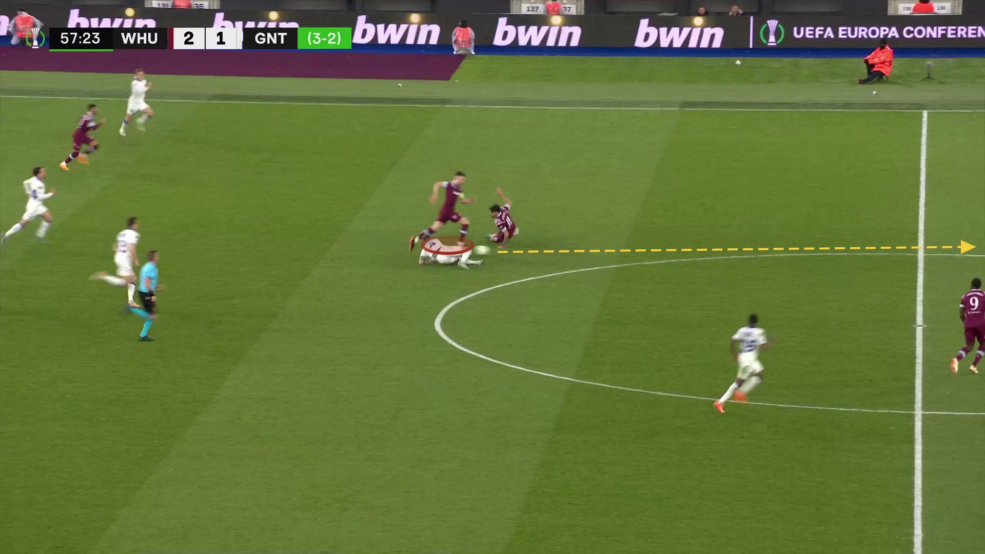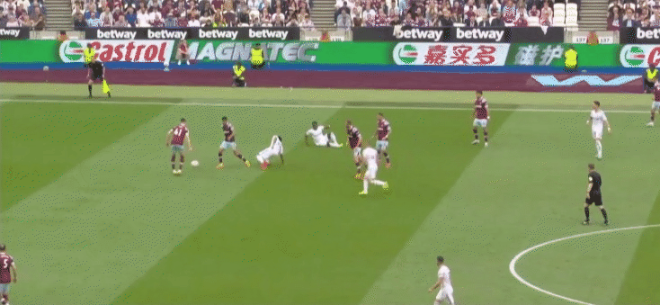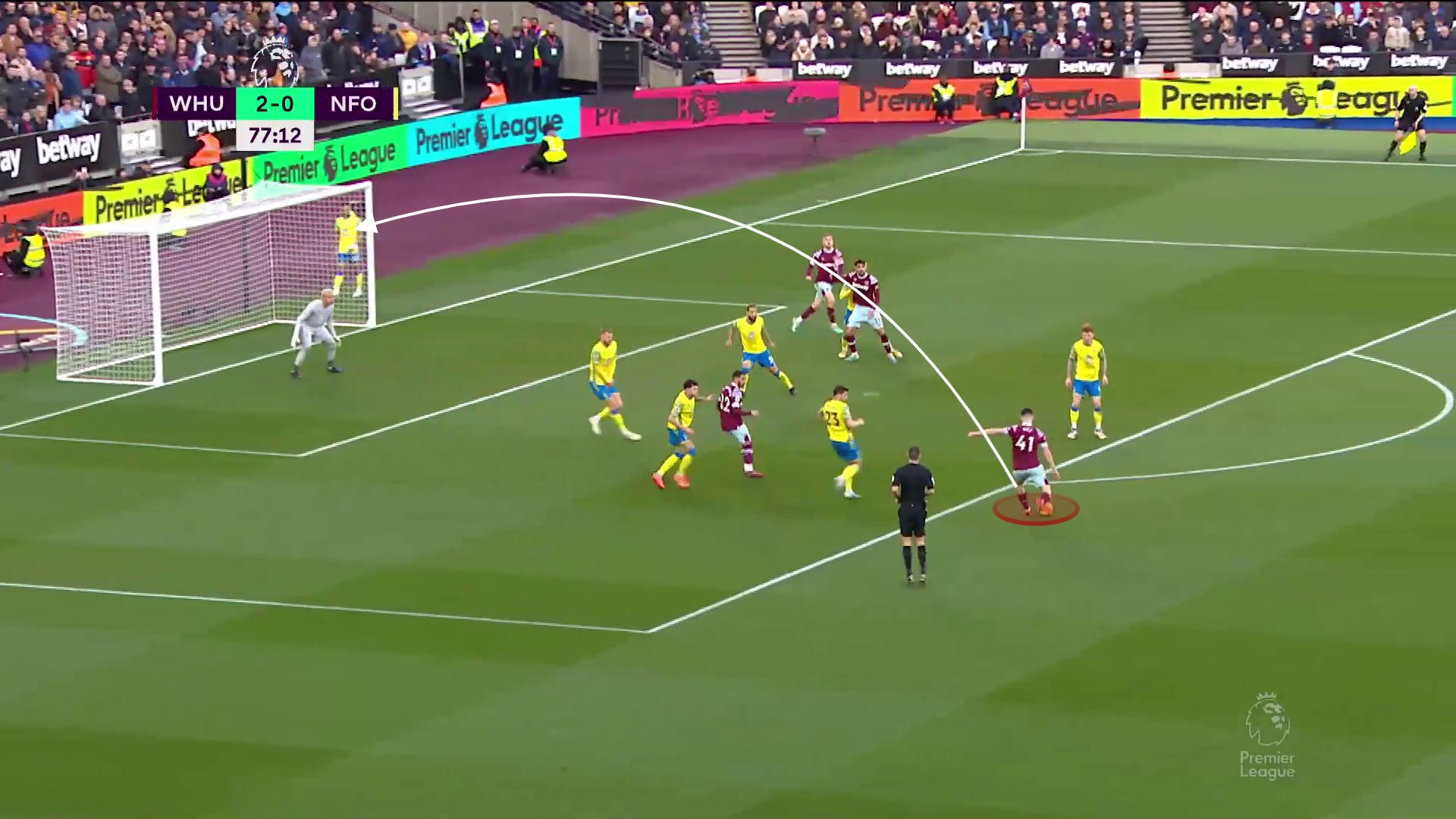 He is probably least impressive with his back to the goal in the first third; his tape doing modern build-up for West Ham is still scarce, after all these years, and he hasn’t been well-served by his coaching to date in this regard. I thought to myself how any issue I have with his game back there might immediately vanish with a certain Ukrainian as a pivot partner, allowing him to be more central. Any issues here do not seem to stem from a lack of fundamental skill, but of practice.