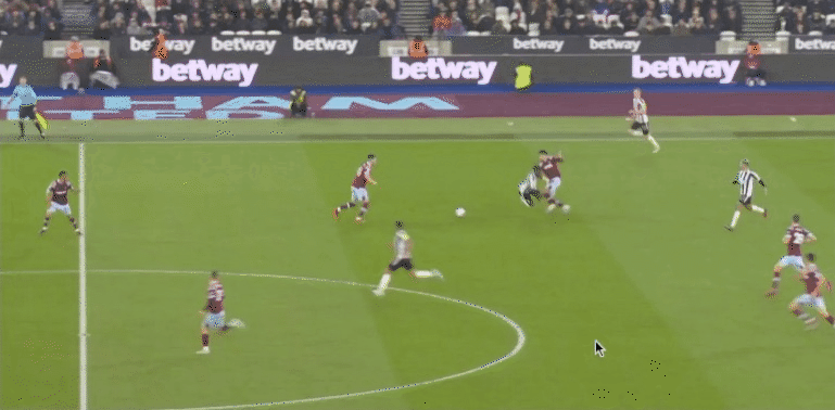 As he moves forward, he can play a little less like his England self, and more like Bruno Guimarães, who, despite having fewer touches overall, has 8 more touches in the attacking third per 90, and bombs forward to the box much more often, with a player like Longstaff covering behind — helping him contribute 9 G+A in league play (to Rice’s 5).